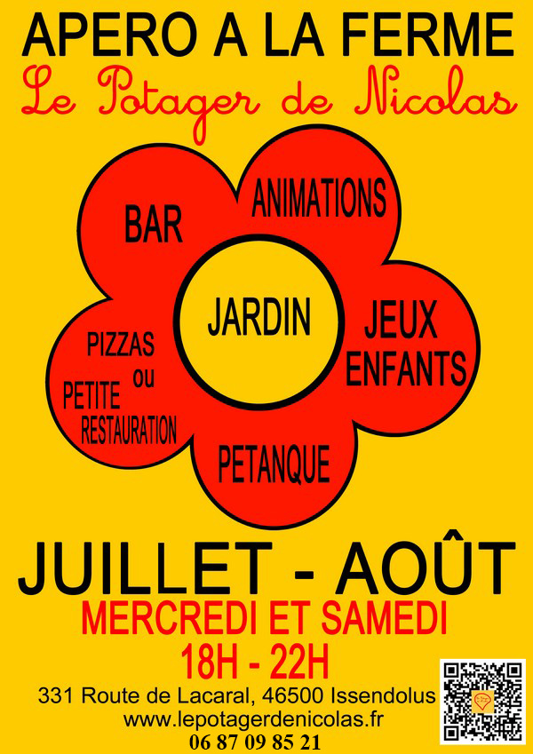 Le principe est simple : Vous venez à la ferme, vous pouvez faire vos courses de légumes et d’agneau et également prendre un apéro accompagné d’une petite assiette à grignoter ou d’une pizza cuite au feu de bois dans le four fabriqué avec un de mes fils … Tout cela pendant que les enfants jouent à l’aire de jeux, les parents eux, peuvent se détendre en écoutant l’animation musicale prévue… tout en sirotant une bonne petite bière locale !!!